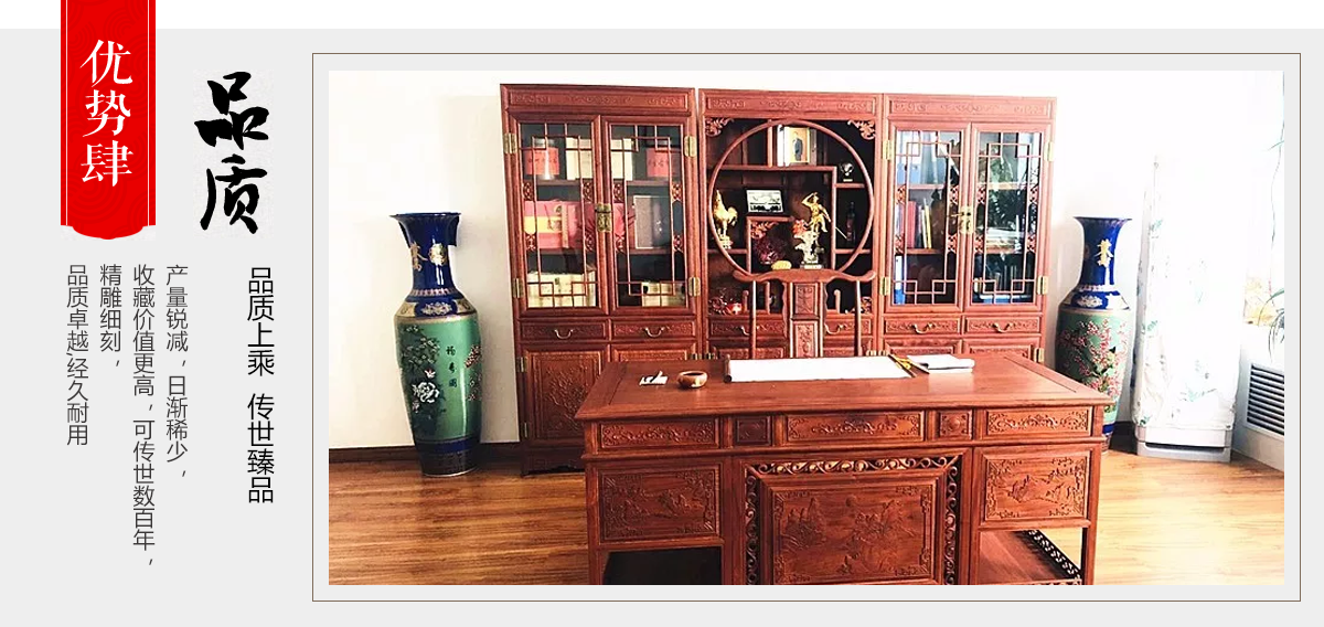 東陽市大聯(lián)福林堂紅木家具廠座落于素有“東方好萊塢”之稱的國家AAAAA級影視旅游基地橫店影視城, 是一家集開發(fā)、設(shè)計、生產(chǎn)、銷售、服務(wù)為一體的綜合型企業(yè)。本公司匯集一批具有豐富生產(chǎn)經(jīng)驗的能工巧匠,具有豐富的紅木家具設(shè)計生產(chǎn)經(jīng)驗。本公司產(chǎn)品主要選用紫檀、花梨、酸枝、雞翅等優(yōu)質(zhì)紅木,并采用純天然蜂蠟飾面。經(jīng)過蒸煮、脫脂、烘干、定型等多道工序嚴(yán)格處理,福林堂紅木始終嚴(yán)格秉承“質(zhì)量第一”、“信譽至上”的經(jīng)營理念,在繼承傳統(tǒng)工藝的基礎(chǔ)上,不斷創(chuàng)新,大力引進先進家具設(shè)備、烘干設(shè)備,實現(xiàn)了現(xiàn)代生產(chǎn)工藝與傳統(tǒng)表現(xiàn)手法的有機相融。